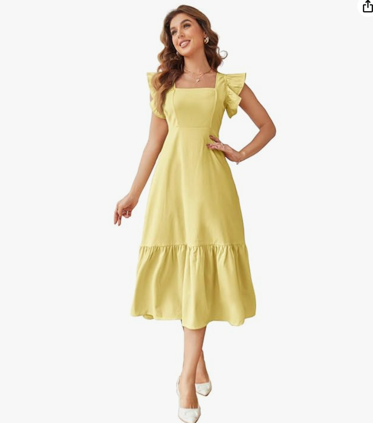 • DESIGN: Elegant midi dress featuring a sophisticated square neckline, ruffle-trimmed cap sleeves, and a cinched waist for a flattering silhouette